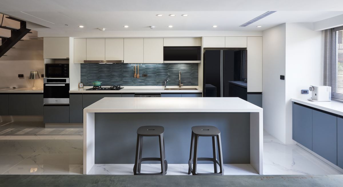 揉合灰藍色與美式細節元素 台東在地人文風光走進廚房裡