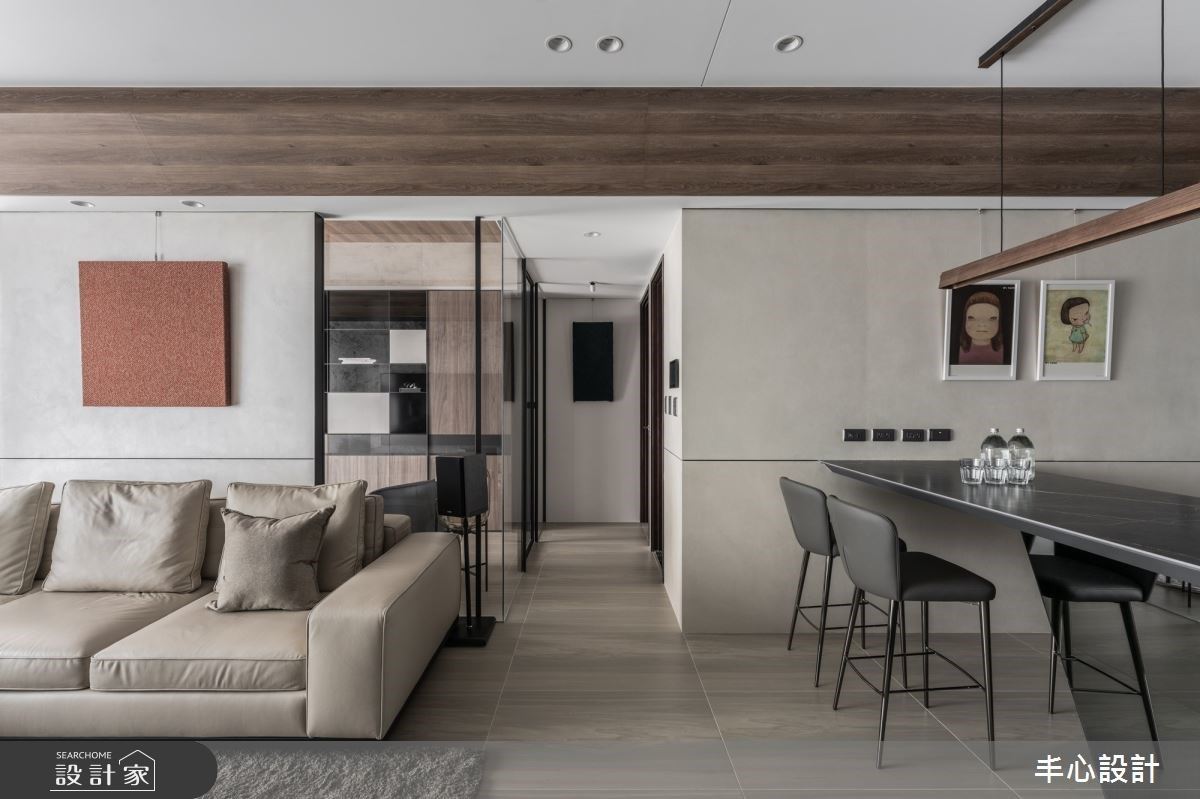 平常工作繁忙的單身屋主,結束工作回到 16坪的現代風新家,期待擁有放鬆、舒適的居家生活,或是享受下班後的小酌時光,喜愛烹飪的他平時收藏許多餐具和酒杯,在本次的空間設計,設計師在餐廚區規劃完備的收納系統,一併解決餐具收納需求、隱藏樑柱存在感,再搭配簡潔溫潤的色彩,營造靜謐質感氛圍。