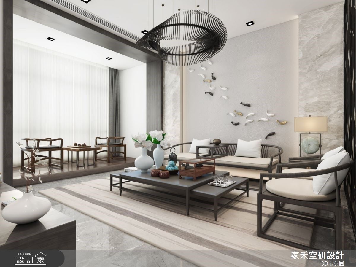 屋主不凡品味的追求;設計師以新中式風作為主軸,以黑灰白三色交互應用於屋內,打造出大器微奢卻不顯得冷漠的居家空間。