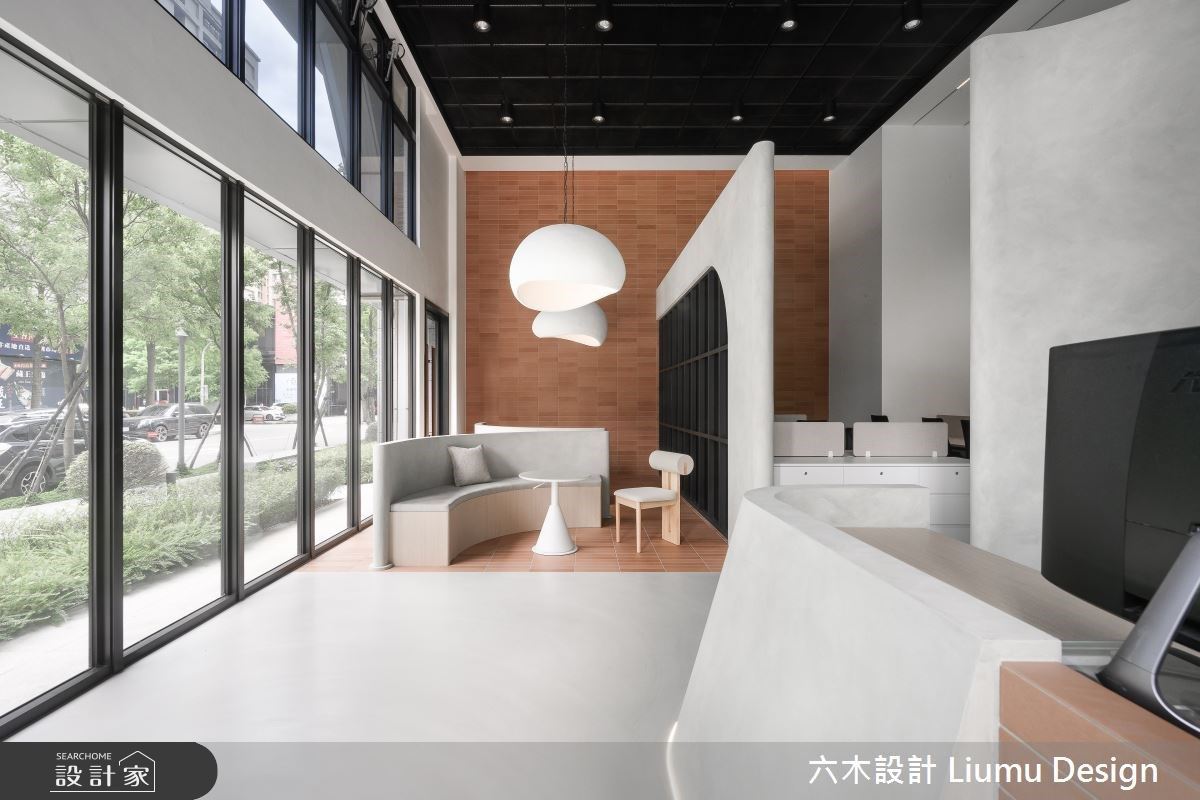 接待櫃檯以不規則的線性切割作為整體造型,俐落大器瞬間化身辦公空間的第一印象。