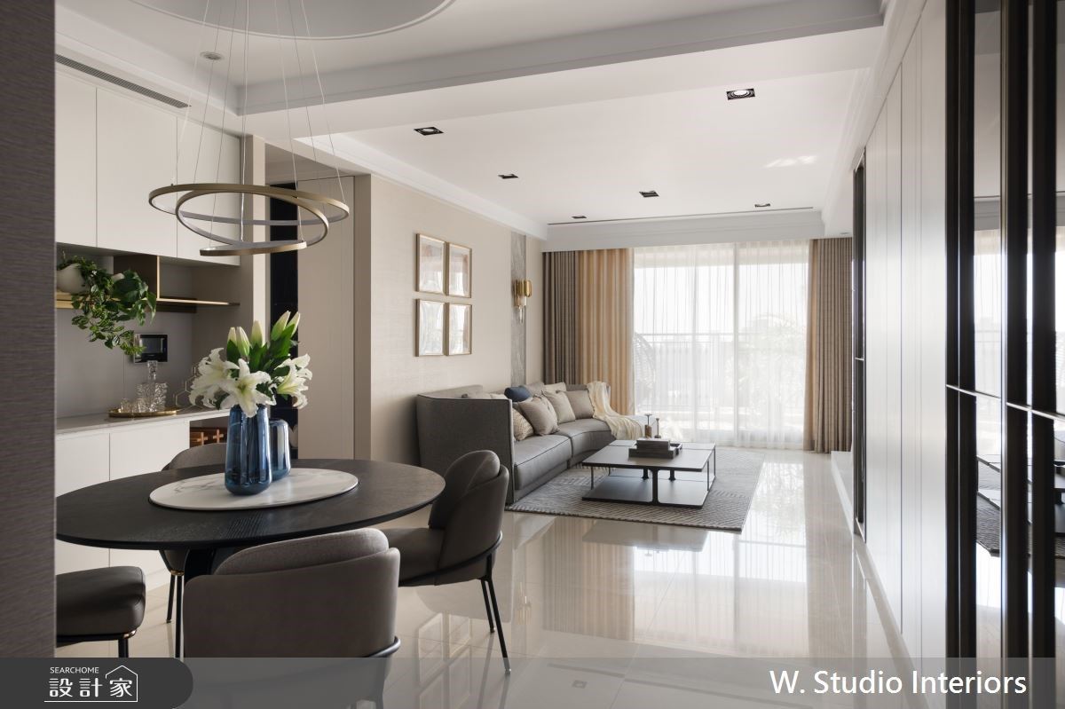屋主是一名企業家,希望新家呈現時尚感和大器氣度,無論自住或招待貴賓,都能被優雅奢華的氣息圍繞。設計團隊運用天然大理石、鐵件、木作烤漆與義大利藝術塗料,創造精緻華貴的樣貌,以純白與銀灰交織,放大整體視覺,更破除收納、風水難題,滿足屋主對空間的美好想像。