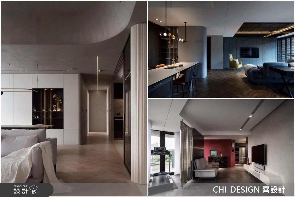 93坪現代風豪宅,以理性冷靜的黑、白、灰三色為基底,搭配簡練俐落的幾何線條,加入黑鏡、鍍鈦金和大理石材等精緻元素,在簡約大方的視覺裡,輕輕寫下一絲奢華質感,並為屋主精心規劃大器感玄關、開放式美廚,成就美感與機能兼具的理想好宅。
