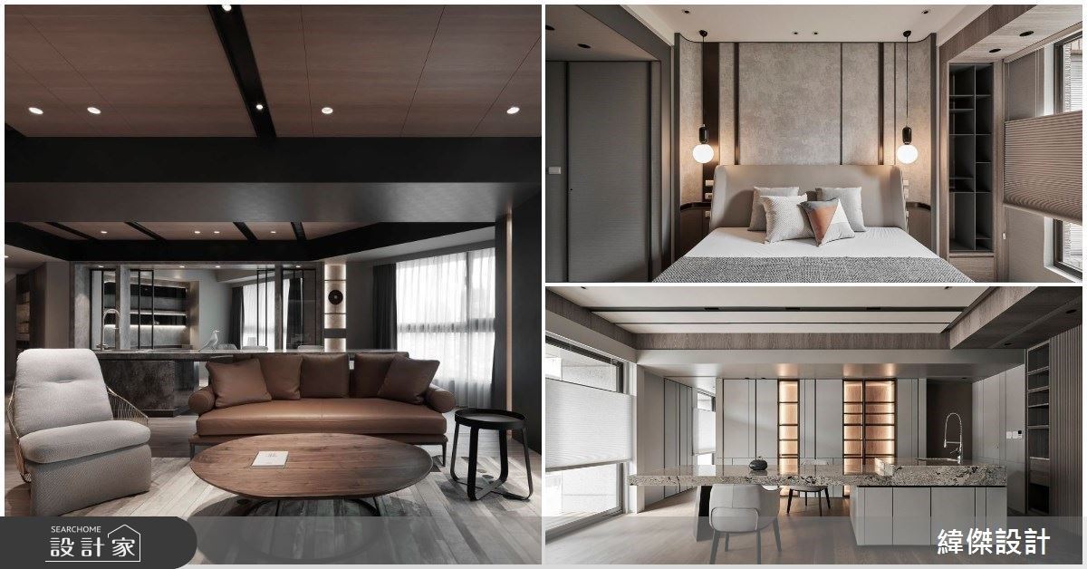 此案建築物具有強烈的造型與特色,正好滿足屋主期盼一處居家和室外環境有所呼應的住所,因此在格局規劃上,為保有 360 度環繞式場景,以巨大的弧形吧檯串聯起交誼廳、起居室、餐桌區和吧台區,建構了獨特而自由流動的空間,同時藉此串聯窗景,滿足了棲居城市仍對自然的依賴;而不同材質以及精品美式家具來作出機能上的區隔,創造出天然又華麗的公共宴會場景,宛入置身高雅迷人的紐約曼哈頓,座擁經典與摩登情懷。