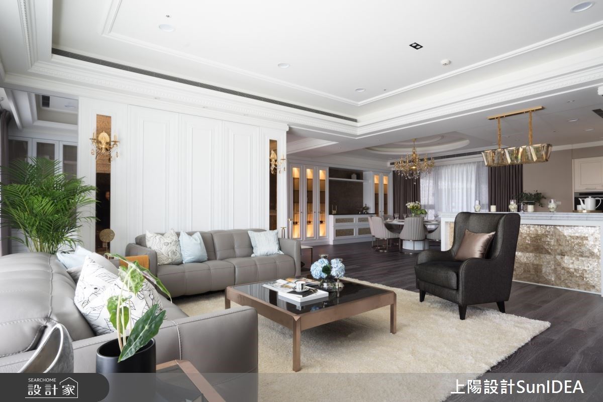 80坪新古典空間裡,引戶外自然光,映照在白色調襯底的