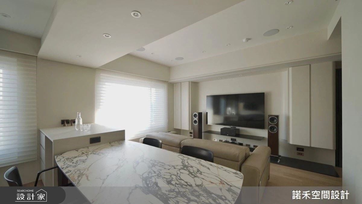 踏入室內便馬上被寢居空間的獨特風格吸引。設計師選用棕紅吊木皮拼貼牆面與地面,儼然打造出一處沉穩輕奢感。闔收於一側的造型長虹玻璃作為可移動式,提供屋主彈性劃分空間。早晨能夠通鋪打開讓陽光灑落,疲憊的夜晚只需輕輕一跩,世界只剩下彼此。