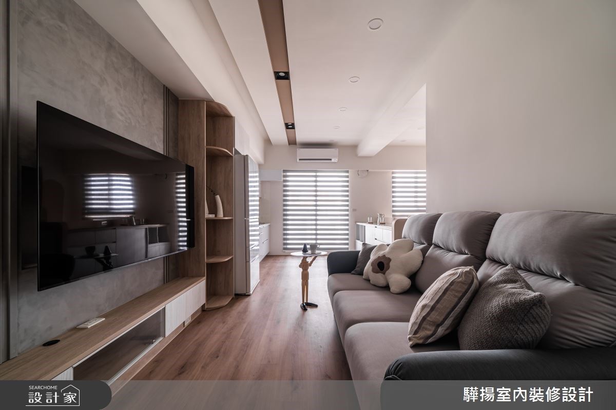 當臥室格局偏向長型時,可以規劃起居區或小客廳,結合書櫃和電視牆機能,為自己打造專屬娛樂休閒區,透過沙發家具的界定,也能夠有效修飾空間比例!
