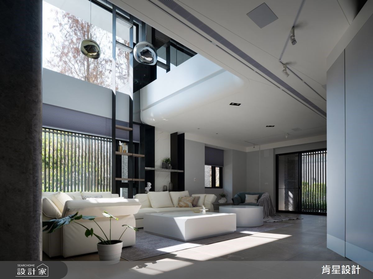 61坪的現代風透天別墅格局為3房,林政緯設計師以都會Lounge賦予住宅全新的定義,透過線性與方框的立面結構,結合材質的穿透即反射特質,理性的展現現代風格,維持人際交流,也藉此串聯獨棟建築的前後上下關係。