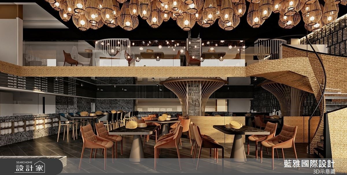 空間規劃簡單區分為等候區、用餐區、及料理吧台區,店面外擺設一復古長椅,並以磚牆立面緩衝顧客的等候情緒,同時避免造成用餐的壓迫感受,入內空間設置溫煦木質餐椅,讓饕客於座位上盡享美味的舌尖之旅,同時加入一絲植栽綠意,打造有如室外用餐的愜意氛圍;料理吧台區拼貼異國感的活潑花磚,讓此處瞬間化身商業空間的目光聚焦處,同時呼應空間中的木質調與植栽擺設,最後於照明燈飾的選擇上,以線性間接光源與交錯堆疊的天花造型相互呼應,讓線性語彙恣意遊走於商業空間的每一隅。