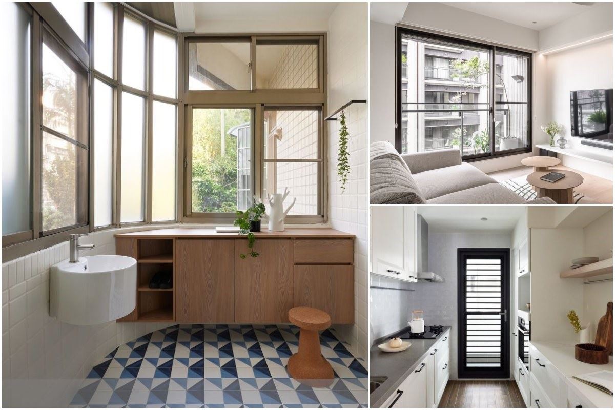 利用「客變」將臥室空間挪給客廳,玄關鞋櫃結合儲藏室讓大部分的收納可以收整在同一個區域,避免零散櫃體壓縮空間,同時也將玄關鞋櫃與電器櫃結合,並將瓦斯爐台往內移解決風水疑慮。牆面洞洞式裝飾也能置物,板臥榻式床架找出小空間的收納之道,淺木與礦物塗料創造好清潔又舒適的生活空間。