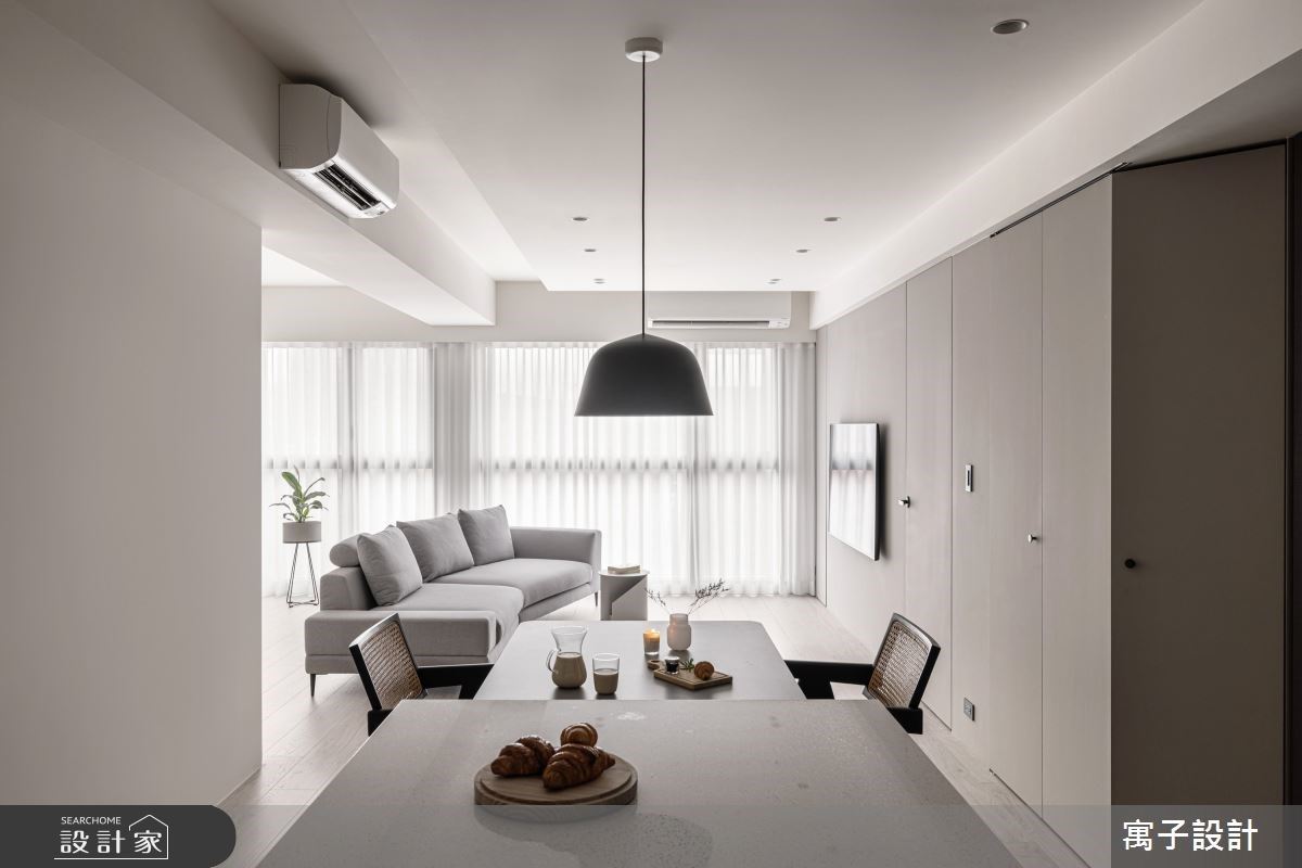 24坪中古屋,鋪敘大面積的輕淺白為基底,適時搭佐溫潤木質調,傳遞悠活愜意的生活步調,同時於立面設計上增添一絲薄荷綠色,有效昇華空間層次,營造出自然清爽的減壓氛圍。