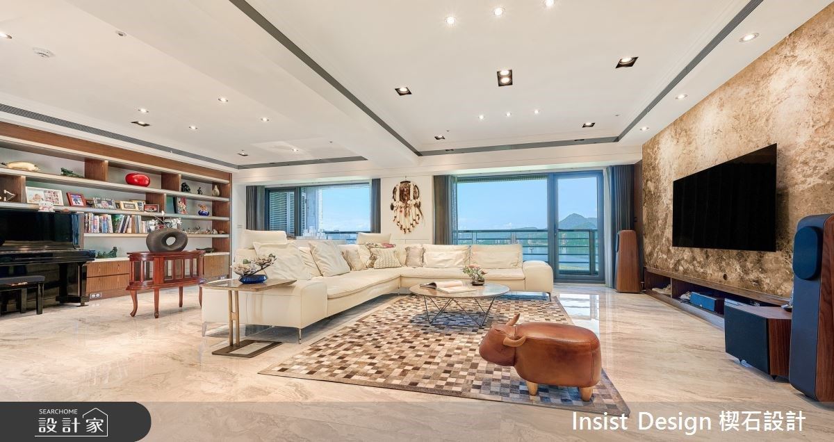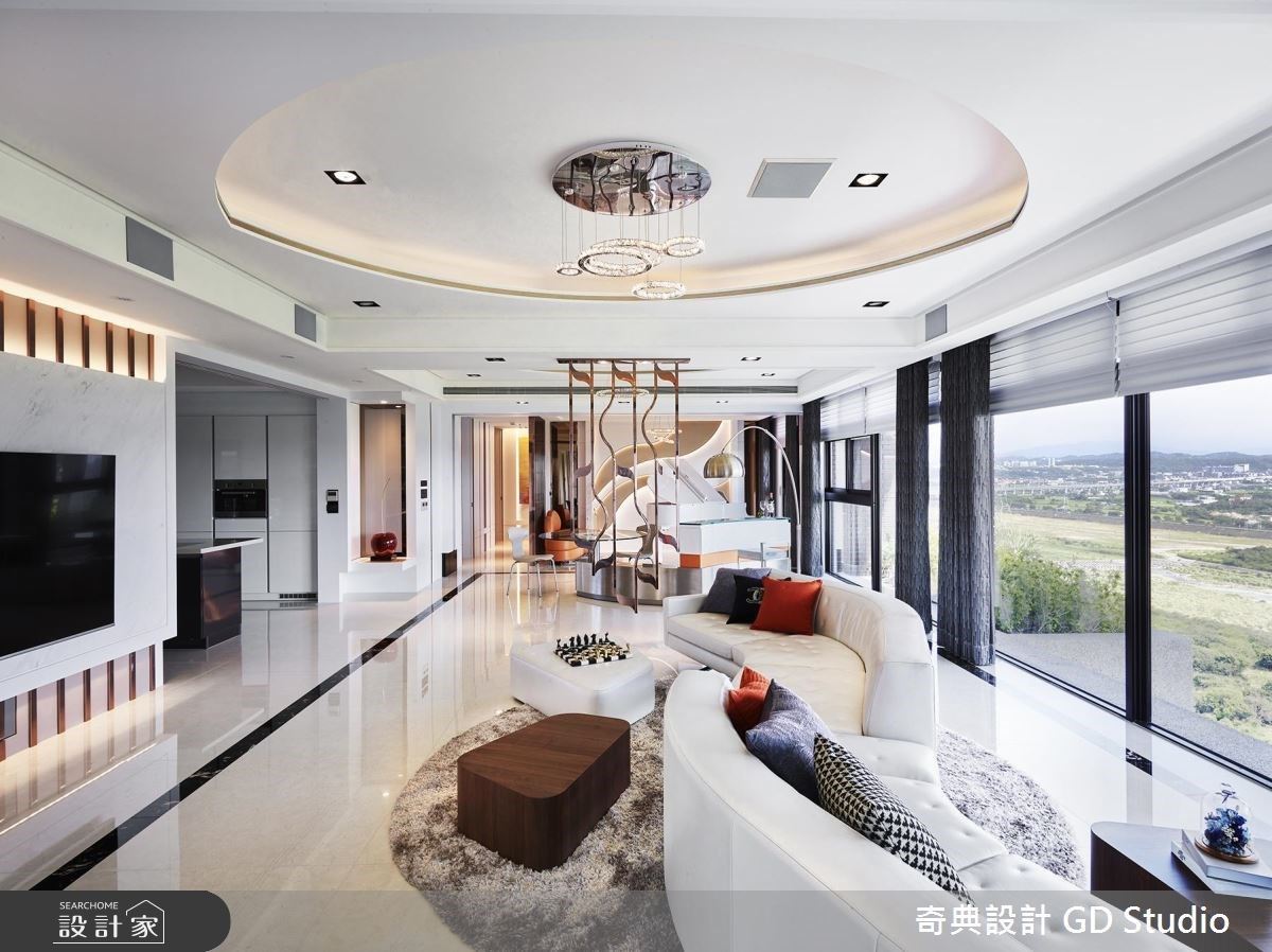 捨去標準三房兩廳格局將原有的三房改為一房,其餘留給公共空間,為喜愛下廚的女主人設定了開放式的客餐廚設計,L型廚房含括吧台與熱食區,當親朋好友到家中聚會時能在料理和與朋友閒聊之間移動自如,客廳前方半開放式的書房以玻璃溫室作為視覺中心,視野穿透於公區的每個角落。