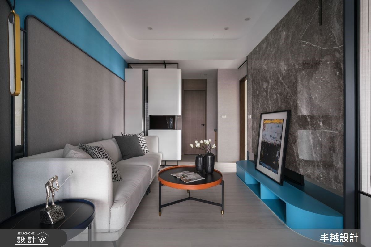 30坪簡約的現代風空間,是年輕屋主夫妻愛的小窩。開放格局讓領域機能共存,藉由通透的玻璃隔間提升視覺明亮度,並放大視覺尺度;光恣意於室內流動,搭配簡約的幾何元素與俐落線條感,營造出流動、活潑的居家場域氛圍。