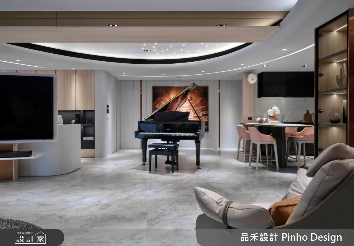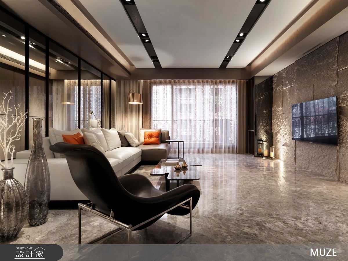 此案屋主職業是醫生,希望回到家後能告別繁忙的生活氛圍。設計師將原空間的四房調整為兩房,將空間大量釋出至公領域使用,且在簡約的空間基底,讓石材、木紋等肌理發揮美學質感,交織獨特的32坪奢華風家屋。