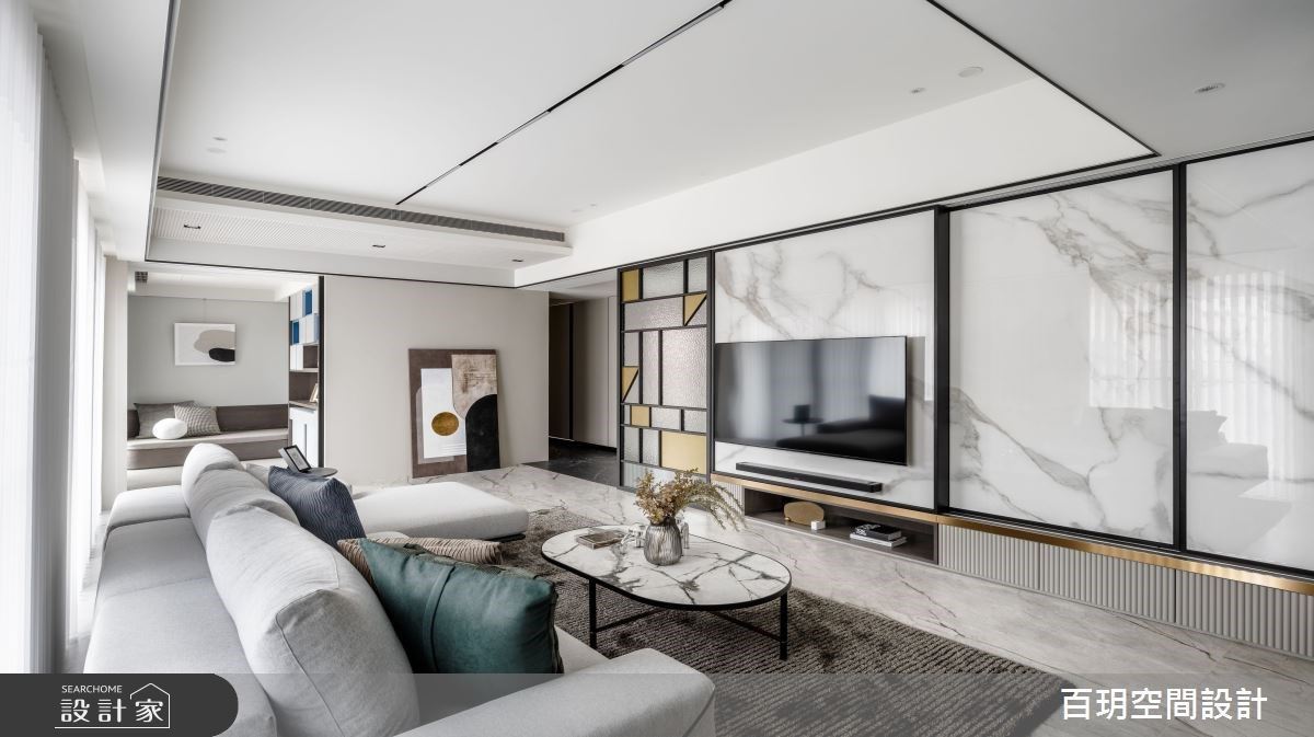 客廳雙面半高電視牆明確場域,雙面特性使客、餐廳同時兼具視聽機能。
