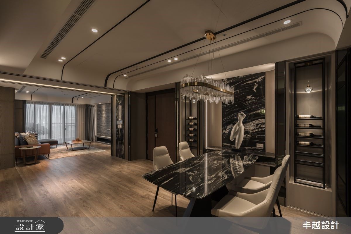 豪宅最迷人之處,在於開創出空間獨特性與迷人的生活體驗。此案為40坪現代風豪宅,揉合異材質的設計工法,創造驚豔的視覺力道;入口玄關到餐廳區的低矮天花,活用鏡面鋪陳手法,倒映出石材地坪以及櫃體等物件的美學細節,震撼人心的視覺張力,宛如置身在電影《全面啟動》夢境裡的顛倒世界。