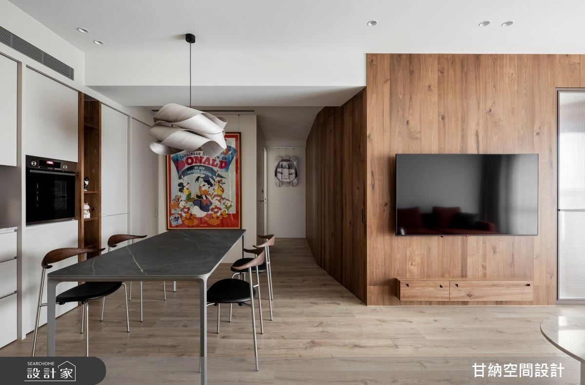 讓每一個新居作品成為特別存在,關鍵就來自空間能否反映屋主的生活與喜好。為了替資深樂高迷屋主規劃理想宅邸,33坪新成屋在公領域廊道兩側以木工量身訂製收納展示櫃,彷彿嵌入牆體的櫃面自身正是一座手工訂製的藝術品,搭配人字拼木地板與櫃緣上下的智能光源,讓喜愛的事物堆疊出生活的舒適感。