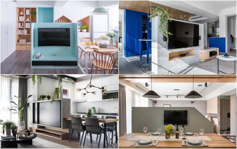 如果覺得半高電視牆還是太佔地坪,那現代許多小坪數住宅也有更聰明的電視選擇!打破電視只能坐在固定地方觀看的限制,旋轉電視柱(架)的設計可以擴充觀影視角,尤其現代人主要生活空間可能不在只是客廳,廚房吧台、餐廳工作桌等等都是休憩空間,可以360度活動的旋轉電視柱(架)就可以讓家裡只裝一台電視但走到都可以享受大螢幕。而且旋轉電視也有許多形式,單支柱狀、整合鐵架、或鑲嵌在電視半牆之中,不僅功能強大又能增添居家造型。