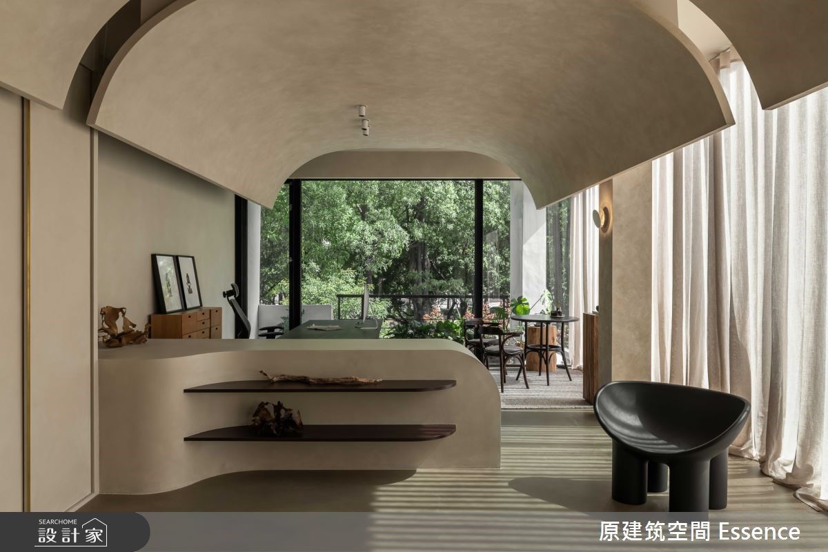 設計特色:運用材質,展現其獨有特性,以適切比例調和帶入光影與綠意的自然元素,呈現空間的俐落與優雅。