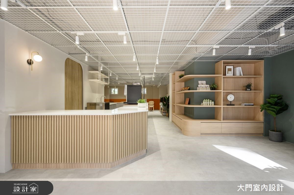 寬敞明亮的30 坪空間有別於一般咖啡廳設計,以「同心圓理論」作為格局規劃手法,在空間正中央打造一座特色中島,其餘空間角落分別安排吧檯座位區、沙發休憩區、一對一景觀咖啡座與景觀鞦韆座,搭配牆面的主題的畫作,打造出結合藝廊的摩登咖啡實驗室。