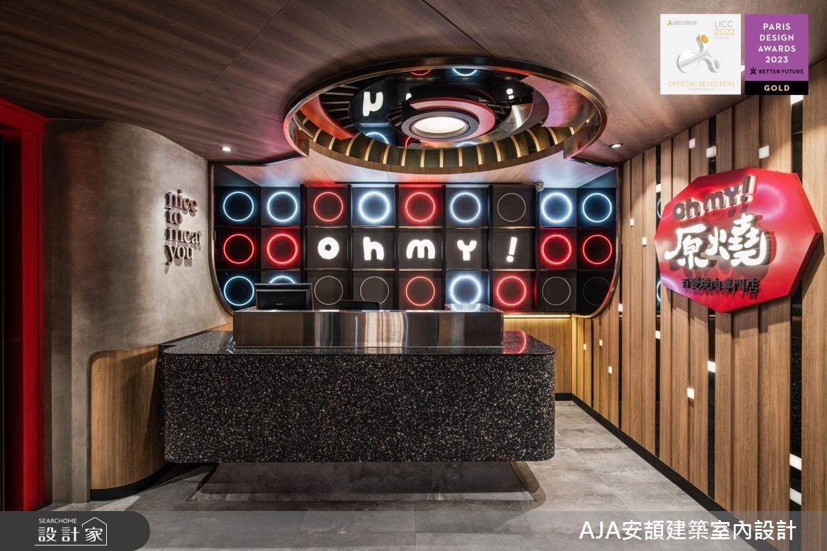 在商空設計裡,我們更看見胡昌明將美學演繹發揮的淋漓盡致!他認為以美學作為設計精神,才能不斷開創新局面,例如在《王品最肉台中店》裡,胡昌明為了體現大人味的餐酒館定位,透過使用者觀看的角度出發,延伸出座位的安排、數量,空間光線的營造與五感體驗,空間的安排創造城市和空間的涵構,建立了室內廣場化,彷彿置身歐洲城市廣場肉舖的多元意象,交織出具成熟、質感的氛圍;《Oh my!原燒》台北羅斯福店裡,則融入豐富的慶典概念,像是撈金魚、煙火等元素,以大量的紅色調營造熱鬧、歡慶的氣息。