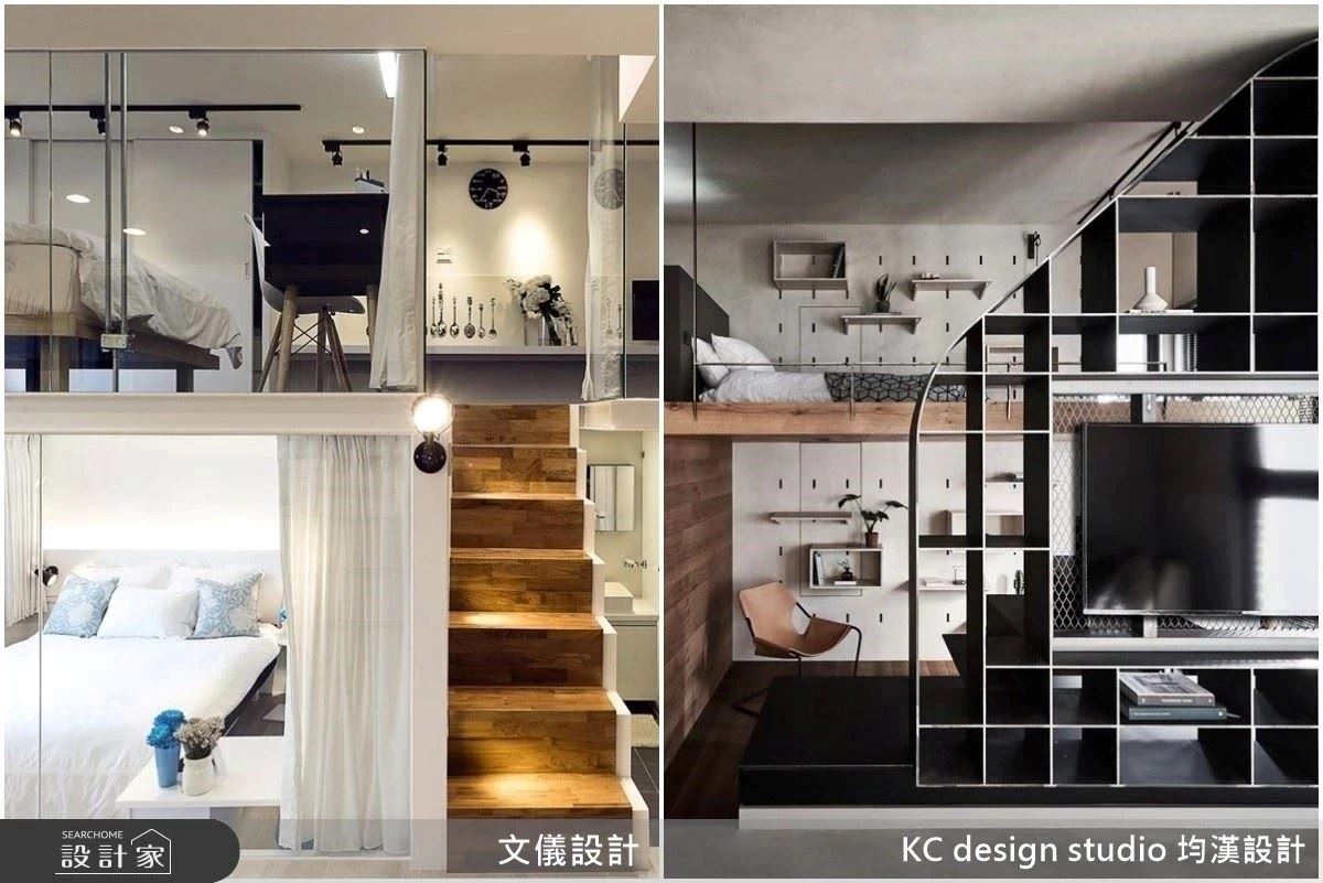 喜愛個性工業風的屋主倆,期待能在 20 坪空間內放入三角鋼琴、大面書牆,並能擁有獨自休憩閱讀的小角落,設計師發揮屋高優勢,並透過豐富質材及色彩的堆疊,打造一處兼顧收納、彈琴、休憩的小角落。