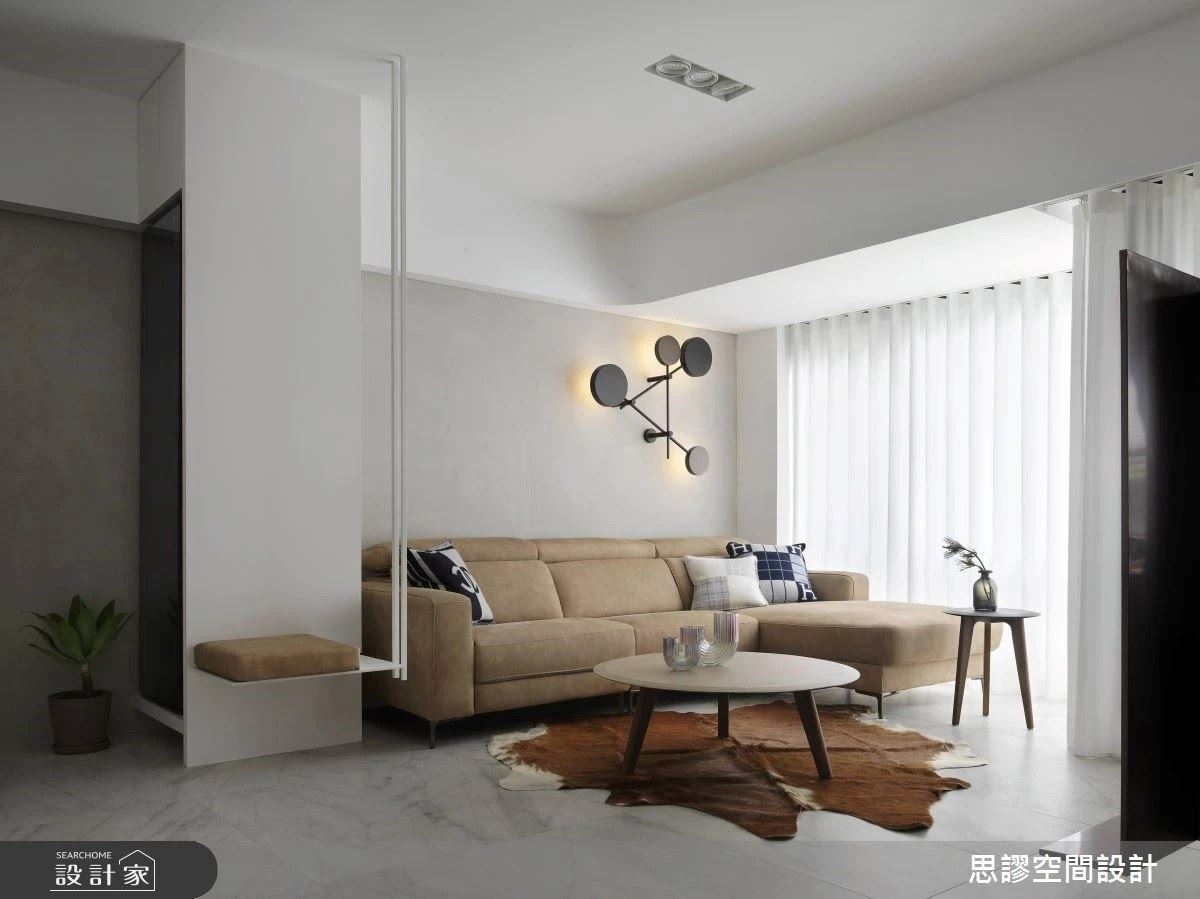 進入公領域,大片落地向陽窗為室內援引溫暖,比鄰著綿延的靠牆臥榻是一家人可以彈性運用的多功能空間。家居軟件選用大人味質感皮製沙發,兼具柔軟和支撐力,適當的舒緩勞累奔波一日的屋主。