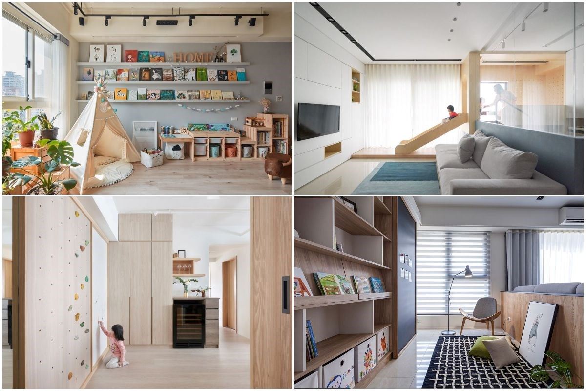 有著兩個寶貝孩子的家庭,平日並不常看電視,屋主夫妻也希望能更好地陪伴孩子長大,因此設計師將電視牆改為軟墊臥榻,增加親子之間的對話和互動,而這個童趣又可愛的空間,也變成了孩子們最愛的秘密基地!
