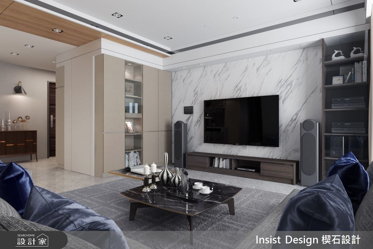 精築唯聚設計為住宅設計創造一種免於過度擁有的居住型態,在喧囂的現代化都市中,營造出能處於平靜狀態中的居住空間,且有助於恢復及思考的空間體驗。例如客廳電視牆的刻意留白,巧妙消弭書房門片的存在感,同時L型書桌檯面更為閱讀時光預留了充裕彈性,讓屋主一家四口盡享自由且純粹的美好感受。