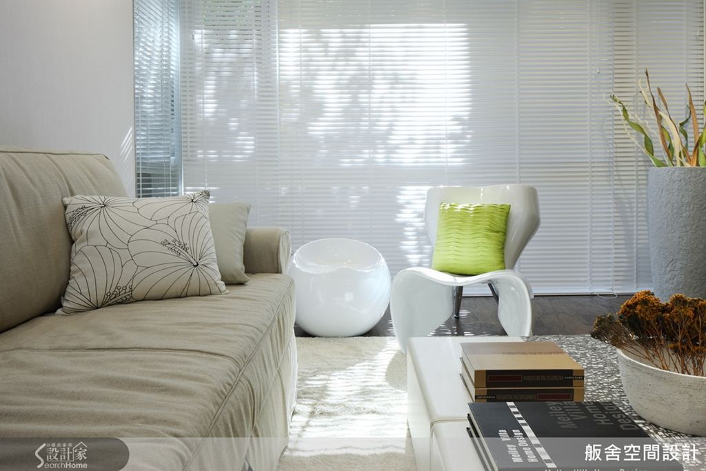 在客、餐廳的立面設計上,為了避免日後產生油漆裂痕,影響整體的視覺美感,鋪陳大面積的中性淺色壁紙,搭襯自然休閒的木地板,創造樸實溫潤的氣息。原本客廳橫亙一只尷尬大樑,又需配置埋入式除溼機管線,沒有辦法做過多的造型,設計團隊聰明嵌入光帶設計,以線性的光暈軟化銳利度,成功轉移視覺的壓迫感受。