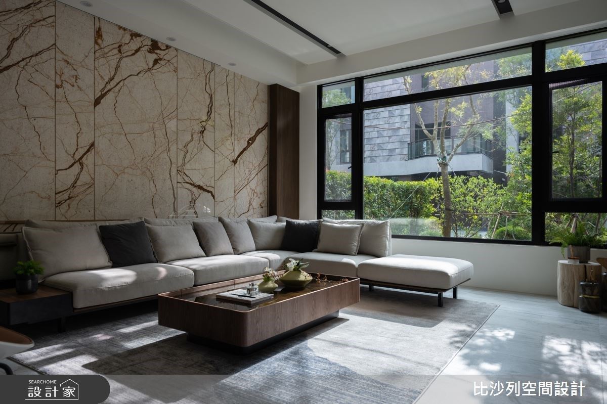 這間54坪的毛胚屋,屋主是一位退休長輩,平時愛好捏陶、花藝,擁有絕佳的藝術視野,希望新居能在簡約基調裡,擁有一絲奢華的氣息。全室以內斂的東方人文禪風為底,透過屋主對山水古石的鍾愛,以壯闊的石材肌理,體現「千巖競秀,萬壑爭流」的悠然心境,刻畫渾然天成的自然氛圍。