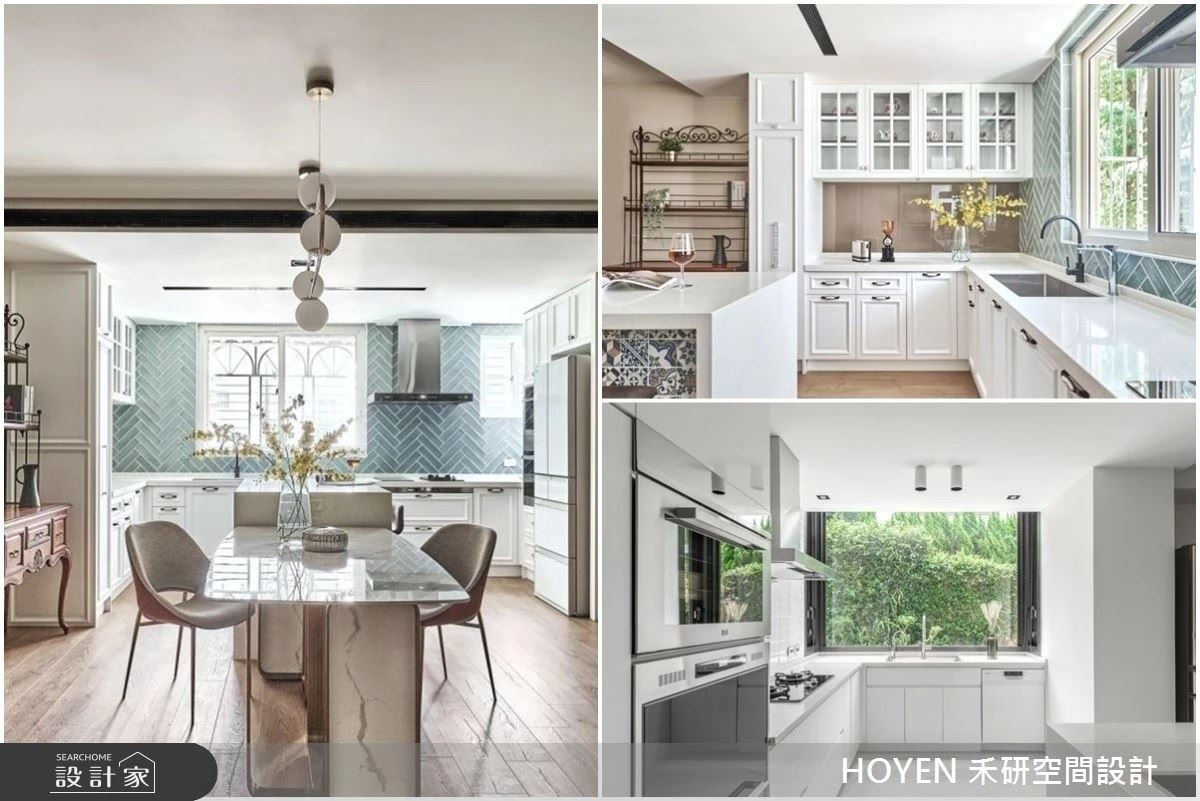 對一個重度烘焙控來說,最嚮往的就是一個施展身手的夢幻廚房!這間洋溢著暖感米色調的 60 坪美式風大宅,女屋主相當熱愛烘焙,為了避免過去只要一下廚,便需要緊閉各個房門,避免油煙、氣味四處逸散,這次裝修新居時,設計師貼心打造鐵件玻璃拉門,不僅揮別傳統廚房的壅擠封閉感,還能呈現開闔自如的彈性畫面。在所有家具之中,廚房的進口廚具是最先決定的,立面也選擇沒有溝縫、易清潔的 AICA 壁板,增強日常使用的機能性。