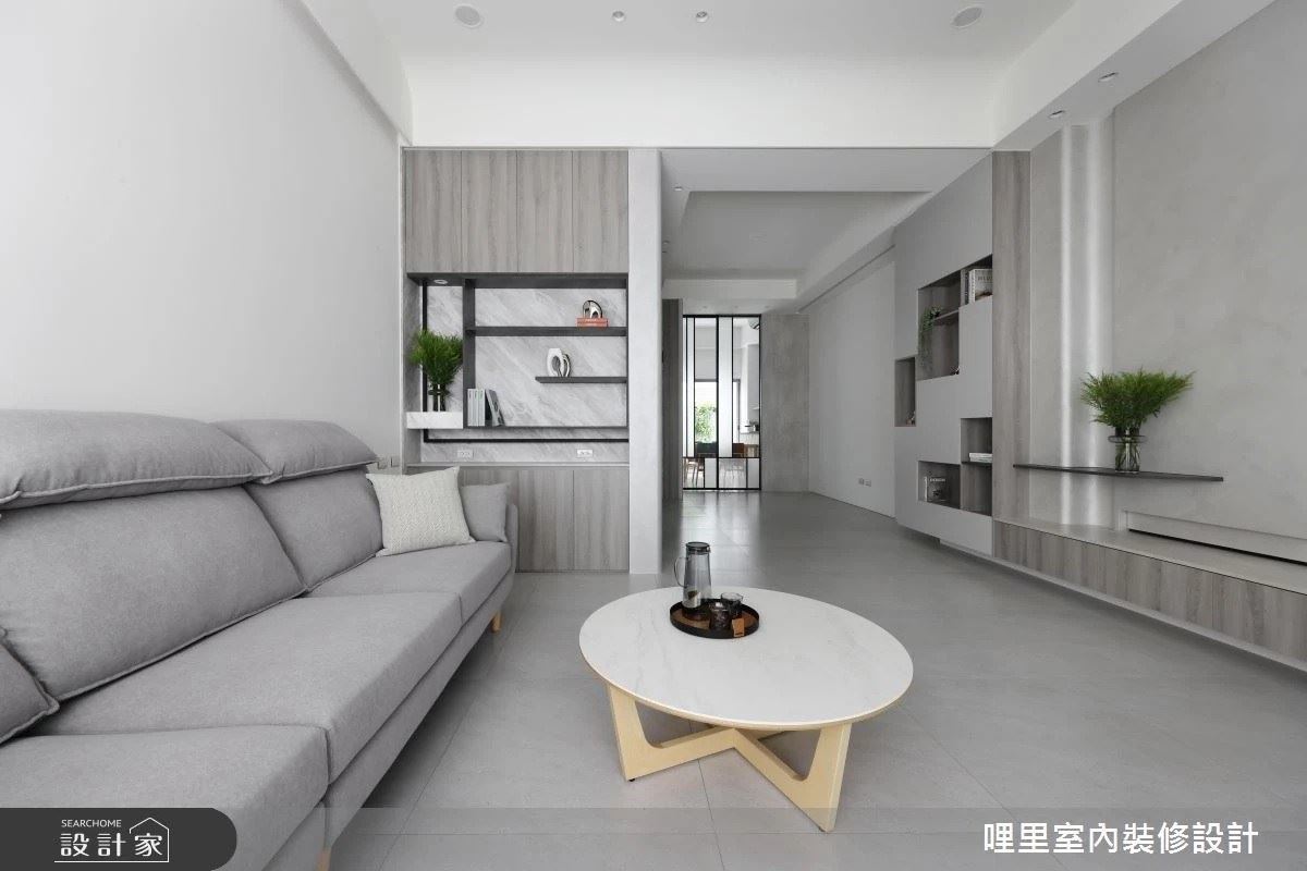 客廳是家庭聚會和休閒娛樂的主要場所,因此格外重視家人的情感互動和空間感,因此選擇了同一色系和材質來設計電視牆和暗門,使得整個空間更加俐落、一體且連貫,同時更提升了客廳的整體空間感,達到放大空間的目的。餐廳則安排在臨窗處,保有公領域的互動與串聯,也確保明亮採光。