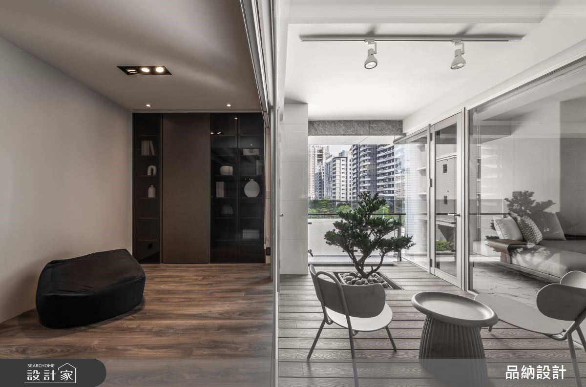 走進獨立的玄關,立刻呈現出開闊的公領域。設計以開放式串聯客廳、餐廳和起居室,以電視主牆和餐廳主牆區隔,雙面牆形成回字型動線,視線自由流暢。客廳鋪設木地板,電視牆以灰石材點綴,黑色石材立柱突顯雅致。展示層架和收納櫃解決不一致問題,天花板圓弧波浪設計營造雲朵造型,營造整體一致感。餐廳的石材牆和展示櫃營造出藝術美學空間,讓屋主閱讀和欣賞更愜意。