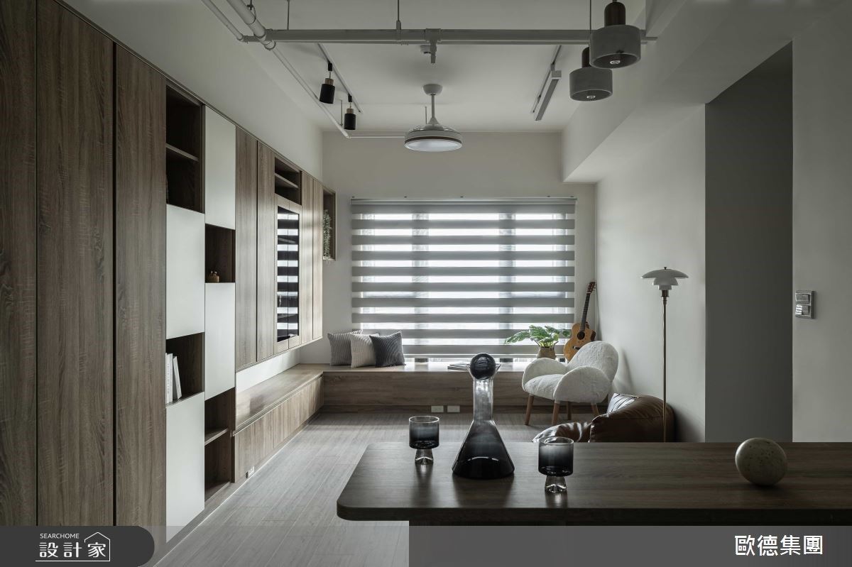電視牆的後方是作為書房空間,除了良好的採光引入外,設計師也希望可以營造輕盈的閱讀環境,因此配置大面積的開放式格櫃,強化設計美感,不僅極具個性又好很實用,讓書房空間提升實用性。