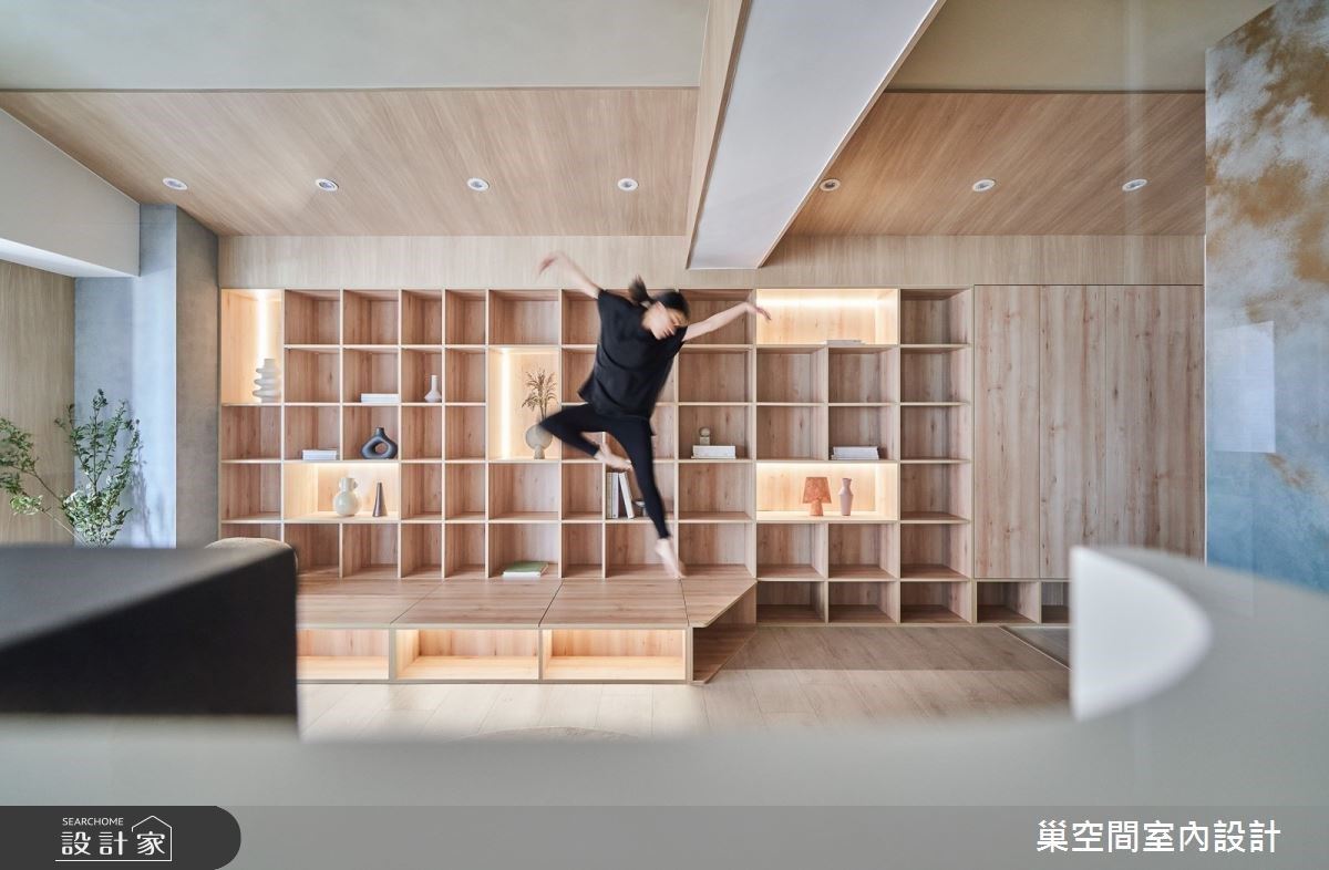 兩間臥室皆延續公區沉穩調性,並拉高木質比例,營造溫煦暖意,無形中降低五感刺激,起到提升睡眠品質的效果。收納部分則利用床頭與床尾樑下餘白規劃,不僅修飾大樑存在感,收納機能也更完善。