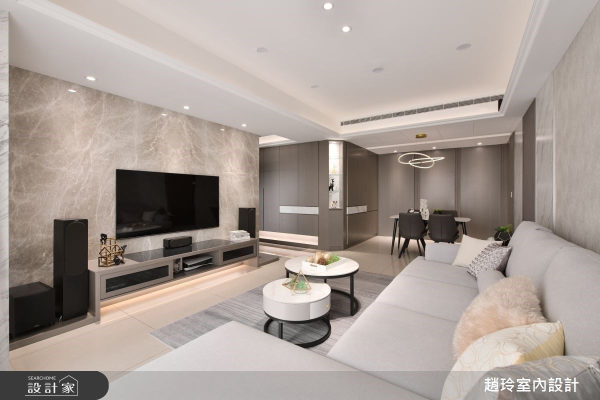 這間現代風親子宅,女主人喜歡邀請親朋好友來家裡作客,卻擔心在空間坪數的限制下,會產生擁擠、不自在的感受。設計團隊經由預售屋客變,審慎考量全家需求後,拿掉一房格局,打造寬敞舒適的空間樣貌;再加入天然大器的大理石紋,並以圓弧造型修飾尷尬大樑,添加低調華麗的質感,不但能迎賓待客,還擁有舒適放鬆的居家體驗。