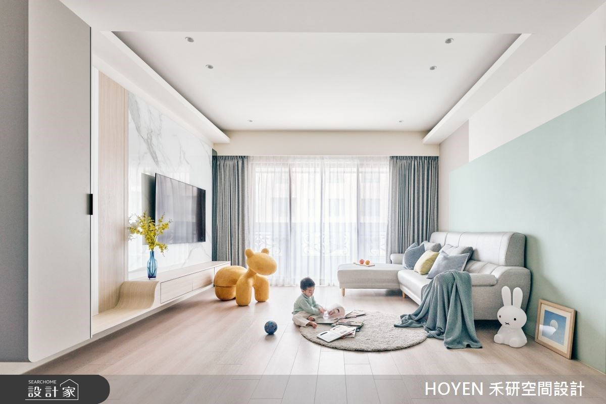 前身是中古屋的28坪新居,屋主夫妻帶著一名孩子入住,除了親子宅必備的收納機能外,也希望能在美好日光環繞下,開啟全新的生活體驗。此次選擇中性休閒的北歐風為基礎,在一塵不染的純白裡,疊加暖調的大地色系,並善用玻璃磚、藝術塗料等特殊元素,加深光影、紋理的細節美感,為幸福的一家三口,迎來夢想裡的居家場景。