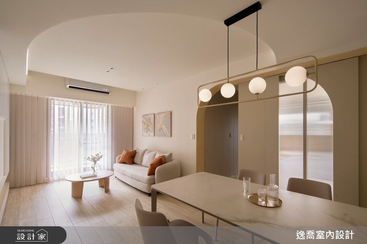 優雅的女屋主,常往返港台工作,旅遊經驗豐富,品味極佳,旅遊紀念品及藝術品都不少,期望新家能有展示區、吧檯、臥榻等,喜歡白淨圓潤的感覺,設計師瞭解需求後,以「淨白、隱性」為設計基調,揉捻「藝廊」概念,運用多元異材質堆疊,導入藝術漆、波浪語彙及精湛的展示收納,烘托日式侘寂的寧靜氛圍,一回家就有恬然放鬆的平靜感,構築現代人最嚮往的理想居所。