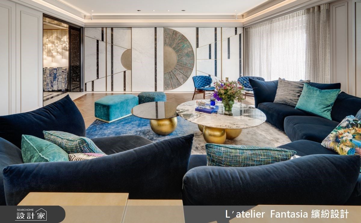 繽紛設計的設計總監Idan深信,每個空間都應該擁有獨特的個性,而這種個性源自於居住者的精神世界。90坪3房的毛胚屋,Idan設計總監透過空間設計的流線與速度,來象徵屋主事業的成功;同時透過異材質的碰撞:石材與鋼烤材質的運用,流線型天花與線條元素,均營造出強烈的速度感,讓屋主在家中也能感受到駕馭跑車般的動感。除此之外,考量到大樓的鋼骨結構規劃,空間中樑柱較多,因此,在設計上融入新古典元素來虛化樑柱的存在感,猶如速度感般的弧形天花板,更弱化了大樑的存在。為呼應敞朗開闊的城市景致,選用低背沙發,盡可能保有視線穿透,可兩面乘坐的設計,一邊可享受俯瞰都市的豪奢景致、另一邊則成為凝聚家人情感的場域。