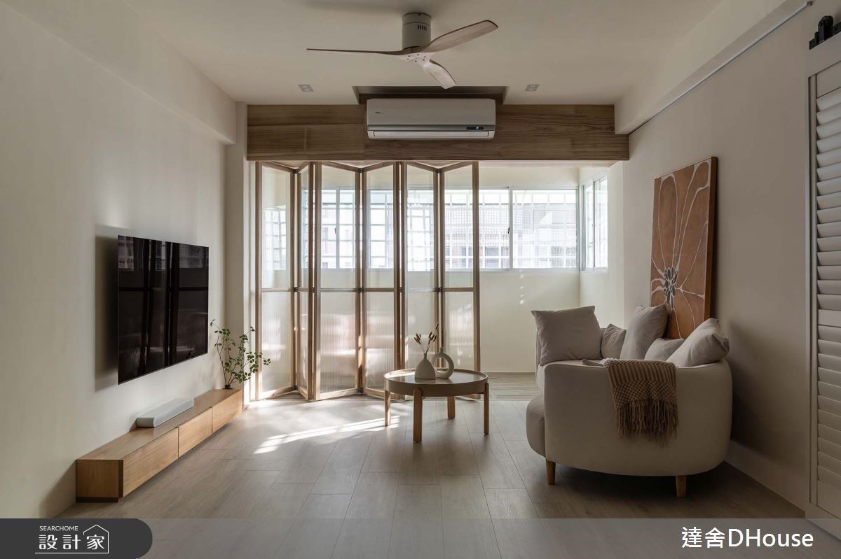與喜歡的人事物互動,可預防或減緩孤獨感,客廳半高電視牆,輕鬆與家人互動,臥榻區加寬,親友來可化身客房,廚房改開放式,並將檯面轉向,邊作菜邊聊天,陽台收起折疊門,能走到室外與自然互動。