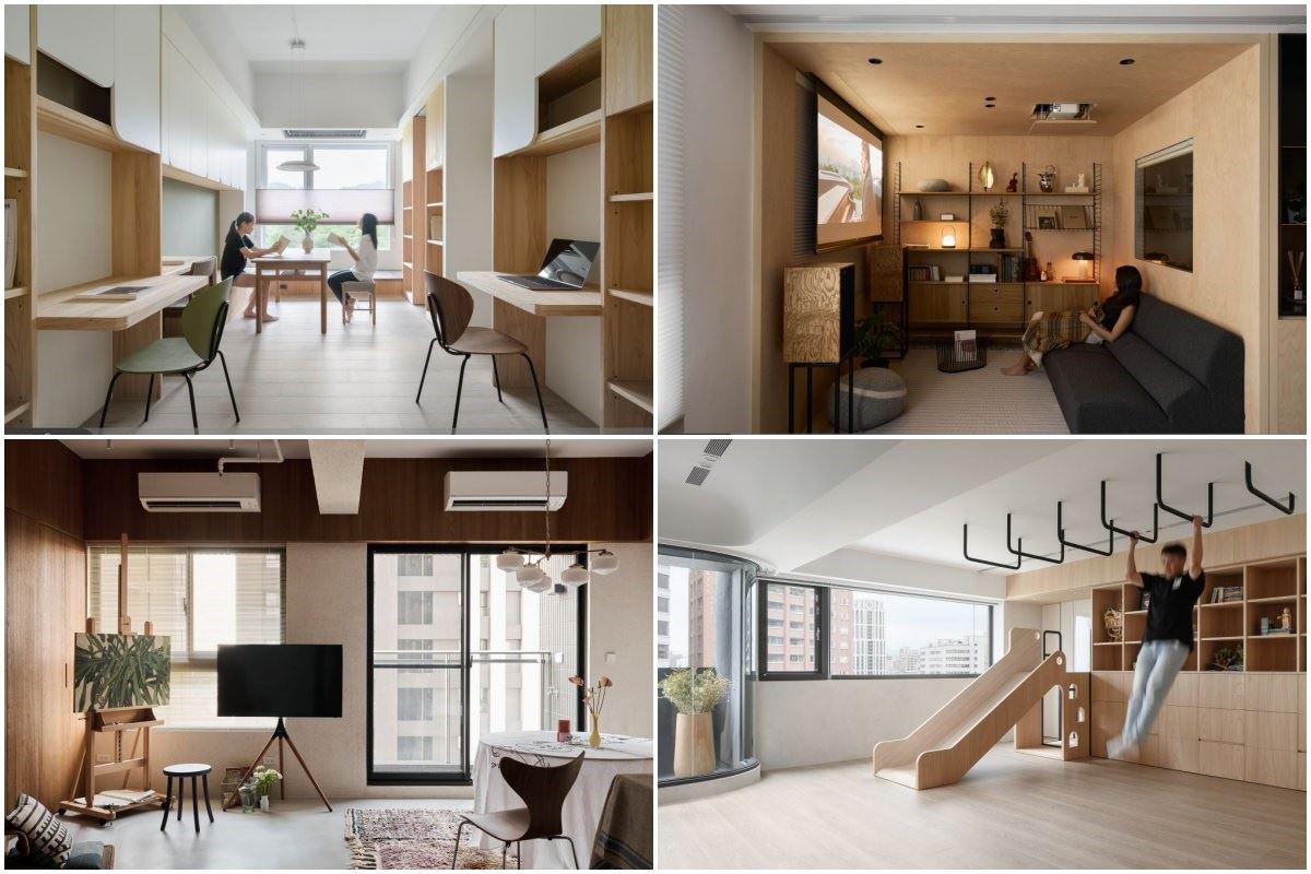 這間 80 坪的新成屋,設計之初便承載著夫妻對未來生活的期待與夢想。為迎接新生兒的到來,設計師王昱承以「孕育」為核心理念,陪伴夫妻共同打造出一個溫暖、安全且充滿成長潛力的居家空間。原本的四房格局經過重新規劃,設計師依據屋主需求進行調整:將公領域旁的房間改造為男主人的專屬書房與主臥的更衣室,有效提升生活機能。玄關兩側也增設了收納設計,右側用於存放日常物品與鞋類,左側則規劃為外出一日衣櫃,提升進出門的便利性與實用性。