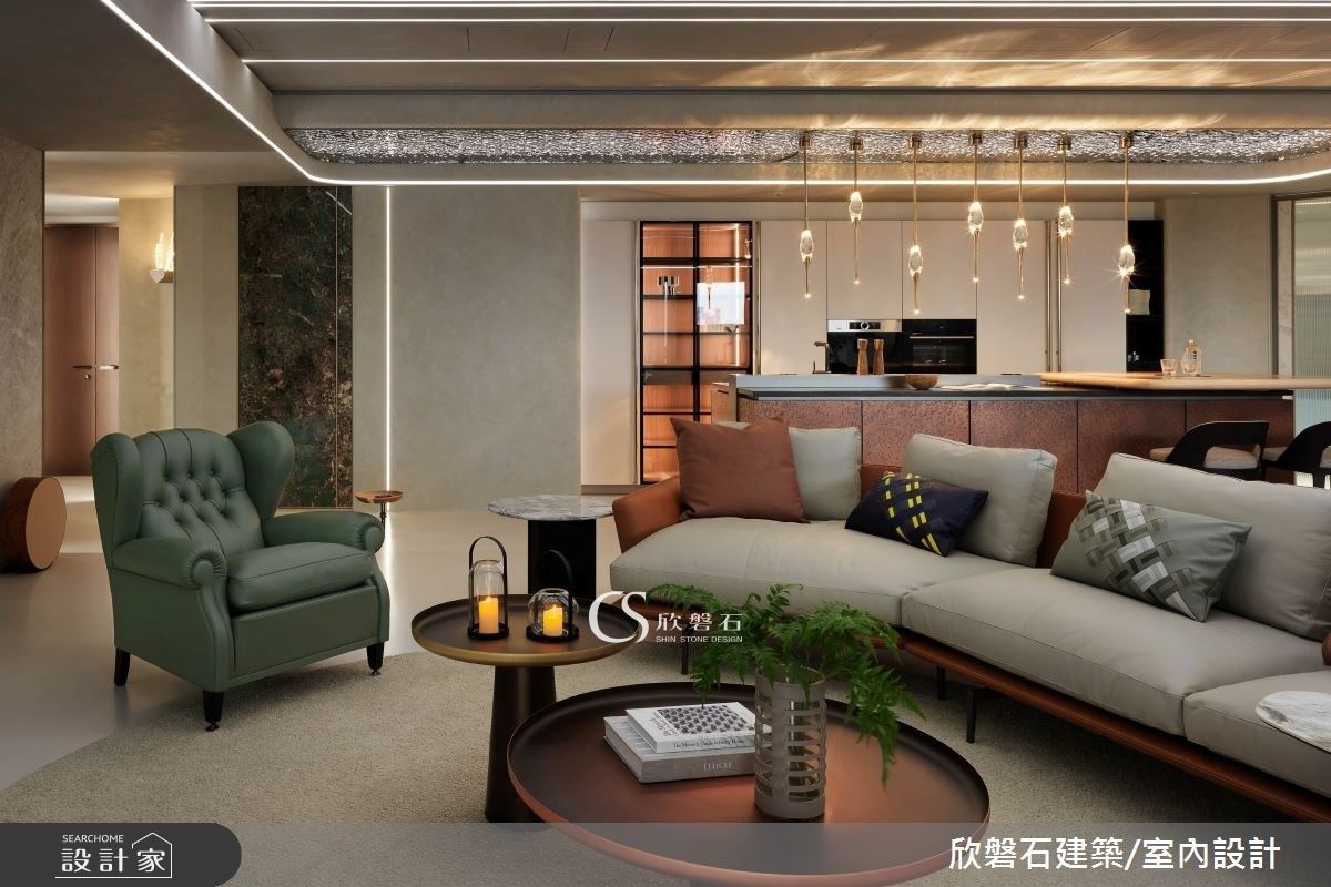 入室玄關設有一排懸浮鞋櫃與公仔展示櫃,滿足收納需求的同時,為屋主珍藏公仔提供一處專屬的收納空間,一回到家就能看到心愛的珍藏,儀式感十足。公領域為在保留三房配置同時放大空間感,選擇先拆除一房實體隔間,改以活動推拉門取代,將空間感全然展開,不論身在客廳、餐廚還是書房,都能一覽窗外景致與家人溫馨互動。客廳設計則以石紋電視牆為主軸,灰、白色調的斜切紋理自然引導視線,同時還彌平了樑下空間,立面平整具延伸性,空間感也隨之放大。客廳與廚房之間以一座中島吧台界定,開闊的檯面搭配一旁精心設計的紅酒架,為屋主一家創造出全新的互動情境,也詮釋出別具一格的生活韻味。半開放式書房藉由推拉門與異材質天花勾勒界線,沉穩的木隔柵在白色基調中跳色,視覺簡約又富有層次,同時考量屋主長時間居家辦公的需求,半開放式書房特別配置地暖,讓辦公空間即使在寒冷冬日也能保持舒適。