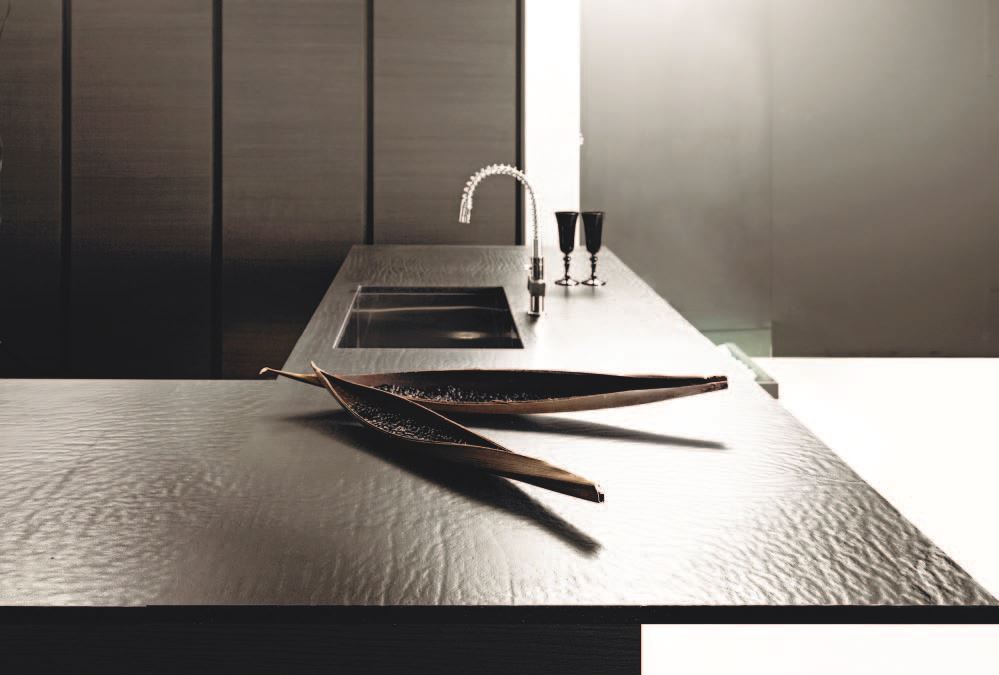 優點:硬度高、耐磨、不用擔心廚具引起的刮傷、不滲透性不吃色