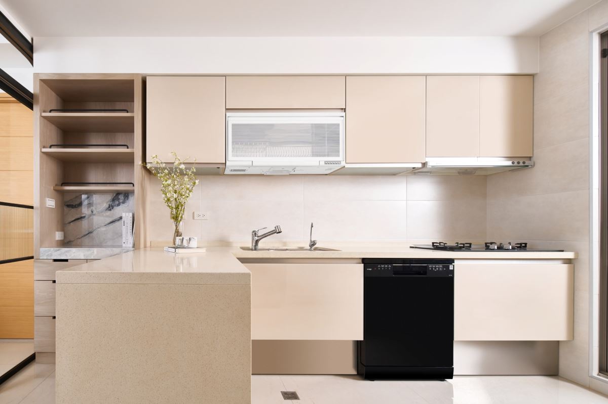 因為屋主一家有熱炒、烘焙、泡咖啡等日常所需,所以必須要有一台高效率的洗碗機,來解決事後的用具洗滌與清潔。他們選用了 svago 獨立式熱風烘乾洗碗機VE7190,這款洗碗機容量高達 16 人份,搭載三組噴水臂 360 度 3D 水網、中式三層籃架、HeatDry 熱風烘乾技術,以及 Fresh&Drying 清新存儲功能,清潔後的碗盤能維持 72 小時的乾爽,而且該廚電可獨立擺放,也可嵌櫃安裝,能夠輕鬆契合各種廚房的需求和美感。