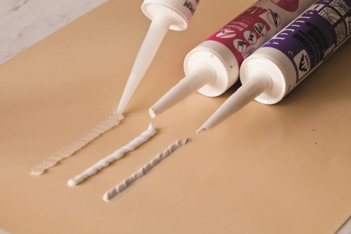.具良好防水性與彈性,適用於浴室、廚房檯面、玻璃窗框等。