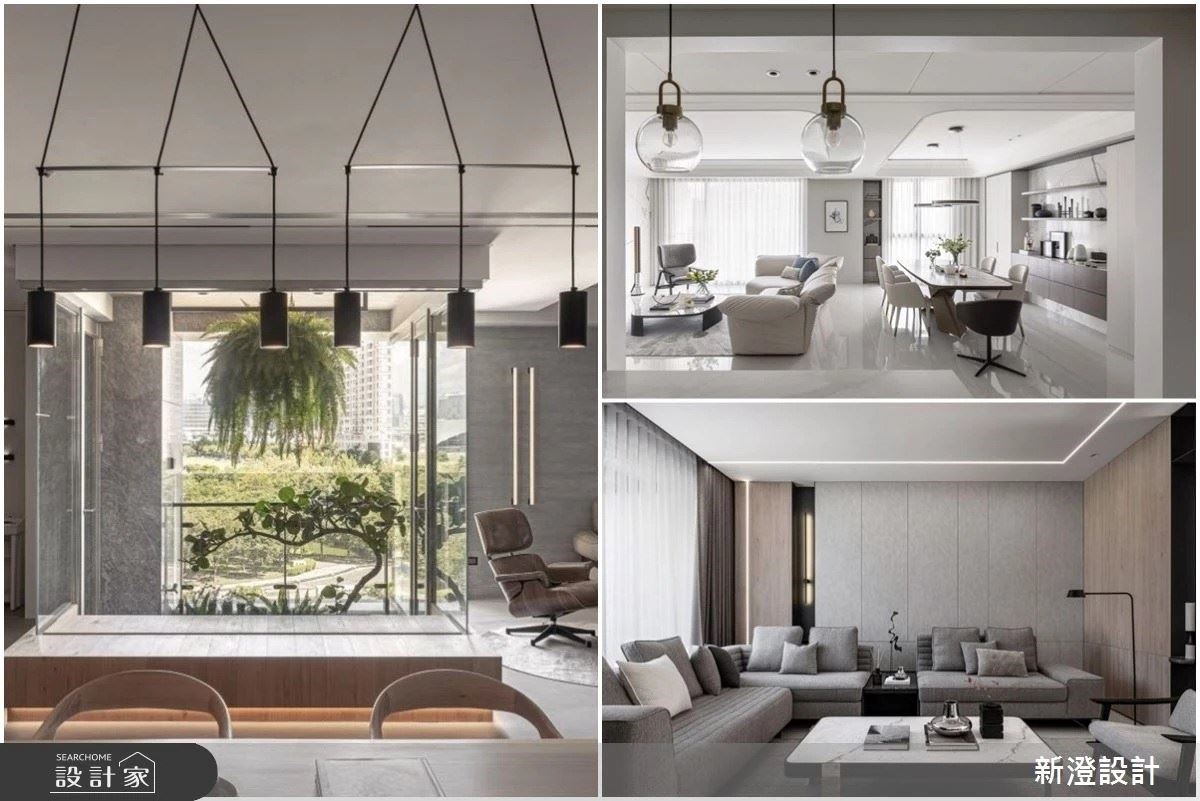 這座33坪的輕奢現代宅,全室採用大理石與特殊漆,以黑白灰為主調,演繹簡約俐落的高級質感,又以溫潤的木質紋理烘托家的溫度。