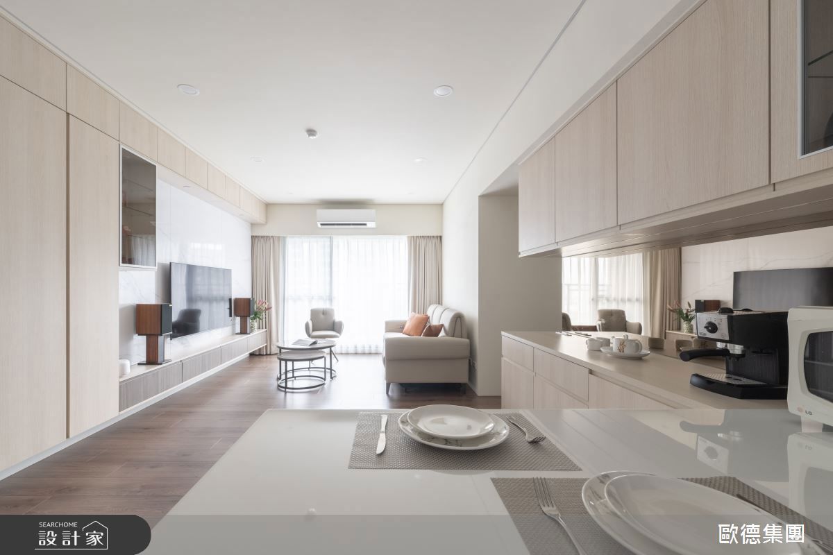 • 主要建材:歐德系統傢俱、歐德壁面造型大板、木作、黑玻、燈帶、鋁框玻璃門