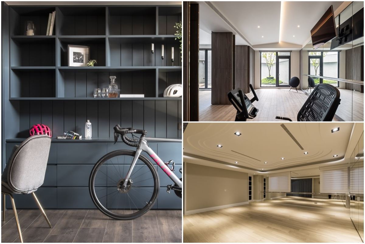 老公和老婆喜歡不同的運動,因此需要針對空中瑜珈、單槓等健身器材進行規劃,同時也須保留公共空間的使用彈性,搭配活動式的家具,讓空間可以依照機能需求改變,也能輕鬆維持整潔。