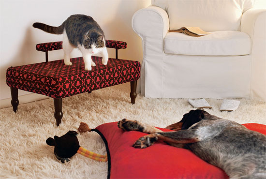 • 若不想家中大興土木,其實只要在居家的局部空間運用小小的寵物用品、配件, 如狗食器皿、玩具、靠墊或寵物小窩,藉由簡單的佈置手法,搭配現有的空間設計與家具飾品,即能呈現主人與寵物日常生活的歡樂場景。