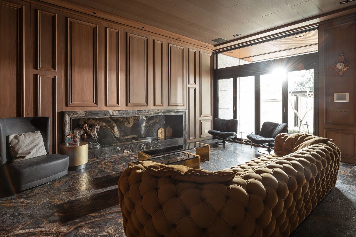 為化解石材倉庫的印象,即便是化妝室的設計與用材也不馬虎,外牆使用蒂諾米黃大理石,並以對花展現紋路的特殊質感,以及使用倒角加工的處理,讓顧客除了挑選石材,也親自見識他們的施工手法。